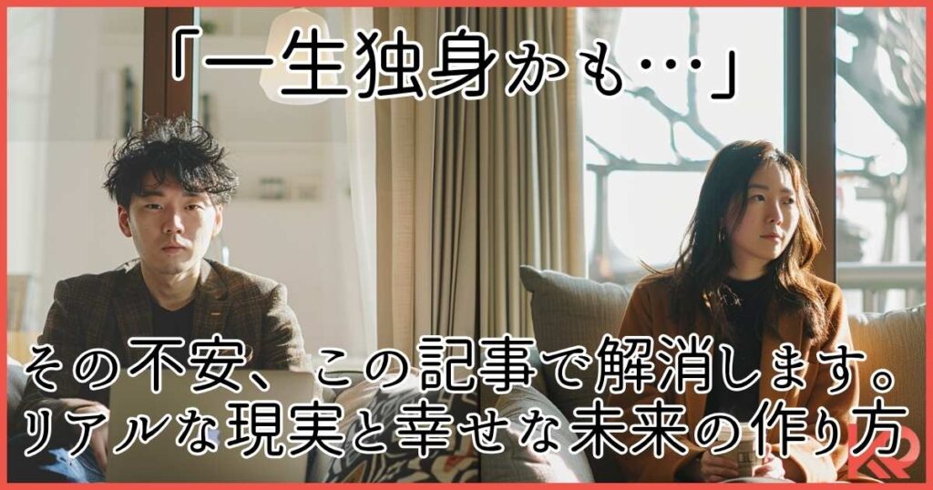 「このままいくと、一生独身かもしれない…」 ふとした瞬間に、そんな不安が心をよぎることはありませんか?周りの友人や同僚が次々と結婚していく中で、焦りや孤独を感...