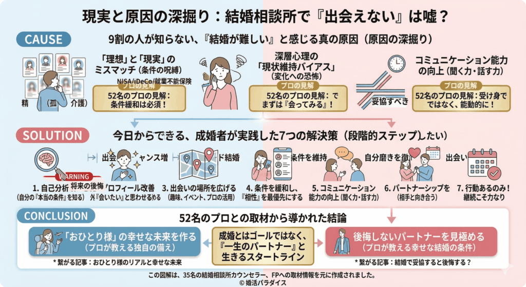 結婚相談所で「出会えない」は嘘?厳しい現実と原因、成婚する人の特徴を徹底解説