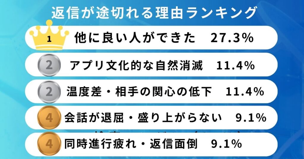 【プレスリリース】マッチングアプリの”返信が途切れる”理由ランキングを発表 ~実体験ベースのネット調査から見えた、令和の恋愛事情とは?~